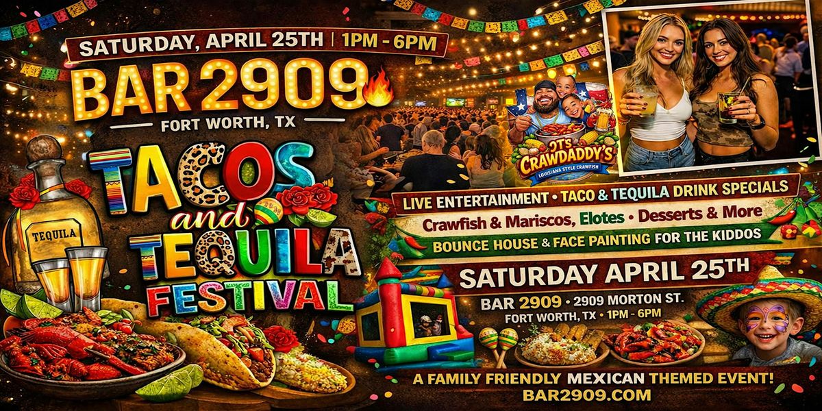 Get ready for a high-energy afternoon at BAR 2909 & Pavilion We’re bringing together the best local street tacos, a massive crawfish & seafood boil, and premium tequila for an event the whole family can enjoy!
