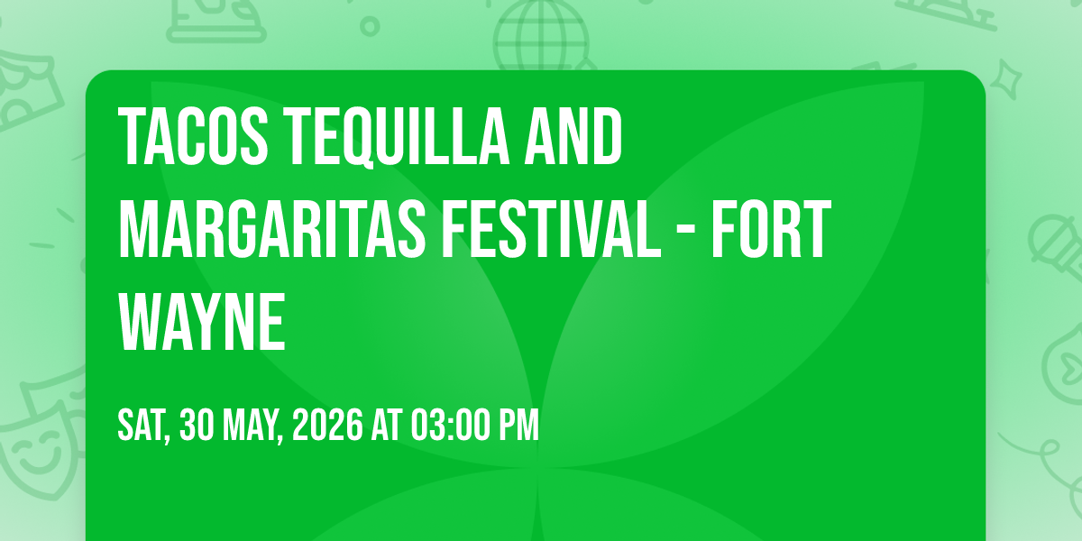 📍 Location: 41.0837, -85.1384✨ Discover the extraordinary at Tacos Tequilla and Margaritas Festival - Fort Wayne, where magic meets reality in ways you've never imagined! 🏛️ Set in Headwaters Park nestled in bustling Fort Wayne, IN, this event promises to be a landmark occasion. 📅 Taking place on May 30th, 2026 at 03:00 PM, it's going to create an atmosphere where every moment becomes a cherished memory. 🌟 Immerse yourself in an experience crafted with attention to every detail, designed to surprise and delight at every turn. They have worked tirelessly to ensure this event exceeds all expectations, bringing together elements of entertainment, innovation, and pure joy. 🎊 Don't miss your chance to be part of this remarkable journey!