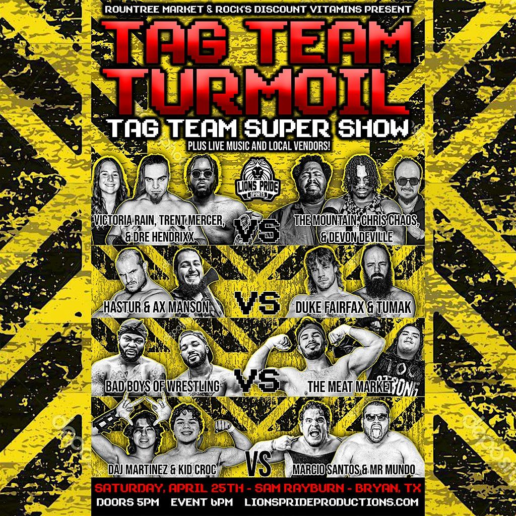 Get ready for the MOST exciting event of the year β Tag Team Turmoil! This is a one-of-a-kind tag team super show where EVERY match is a tag match. No singles. No breaks. Just nonstop tag team action from start to finish.
