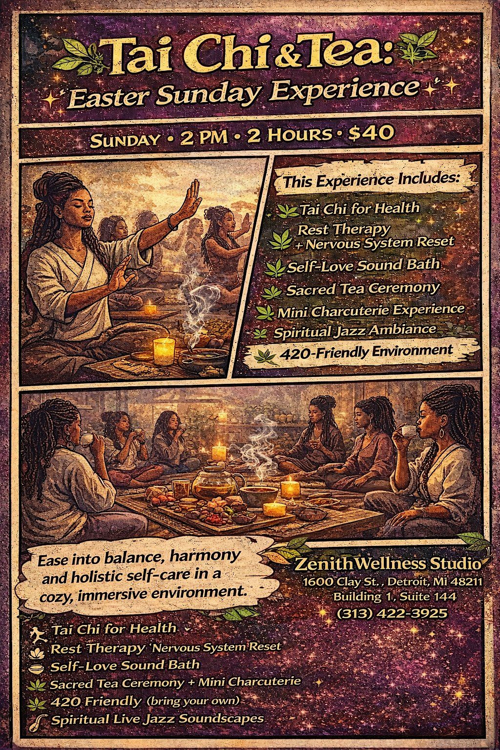 Tai Chi & Tea is a restorative wellness experience designed to harmonize the body, calm the mind, and open the heart. Through intentional movement, soothing sound, and sacred ritual, this two-hour journey invites you to slow down, reconnect, and nourish yourself on every level.