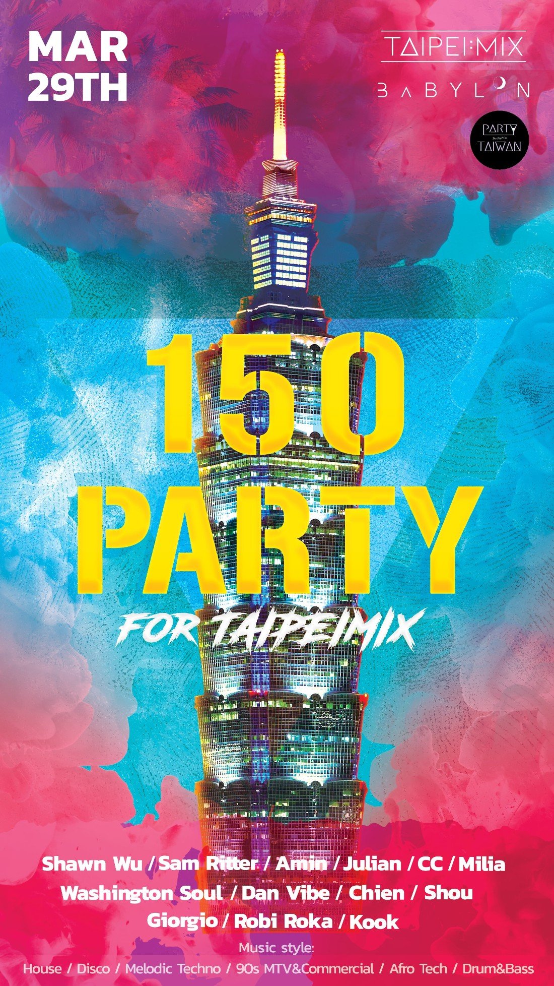 Taipeimix Agency將接管Babylon的兩廳,保證帶來令人興奮的氛圍,並由我們的DJ提供精彩的音樂。準備好跳舞並享受美好時光吧!