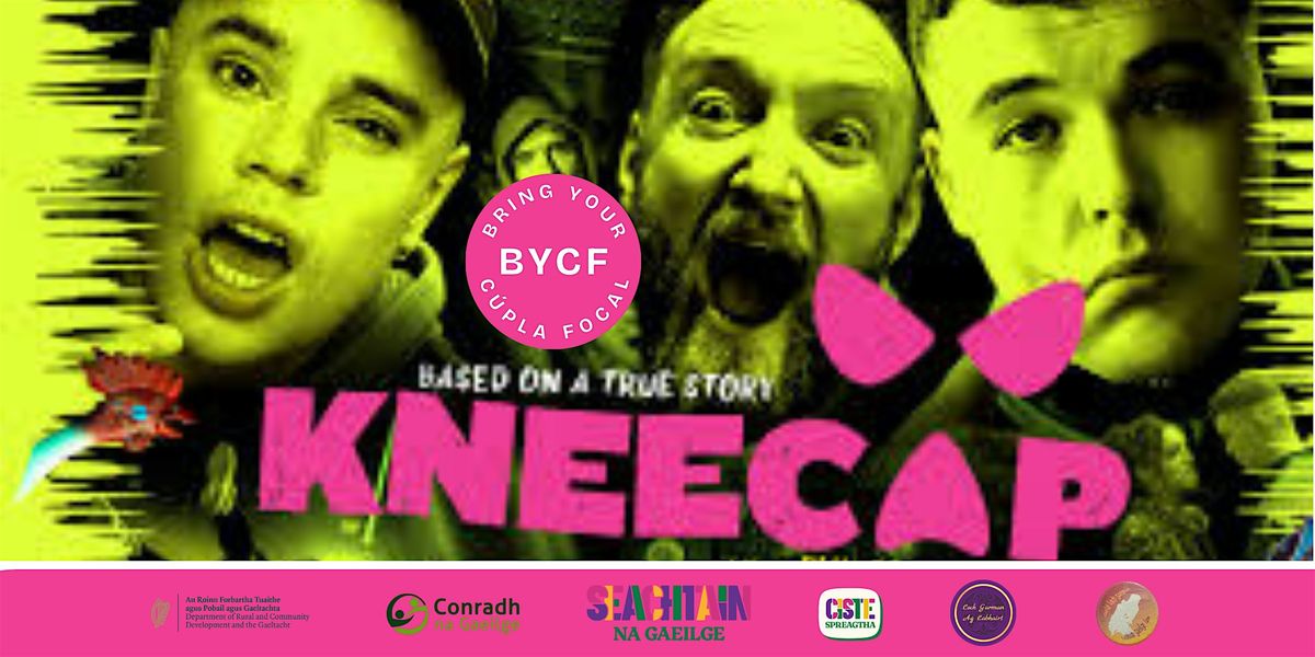 Beidh an scannán Kneecap á thaispeáint i gCaisleán Inis Córthaidh mar chuid de Sheachtain na Gaeilge 2026. Tá na ticéid saor in aisce ach is féidir tabhartas roghnach a thabhairt ar son Doctors Without Borders. Beidh soláistí saor in aisce ar an oíche freisin.