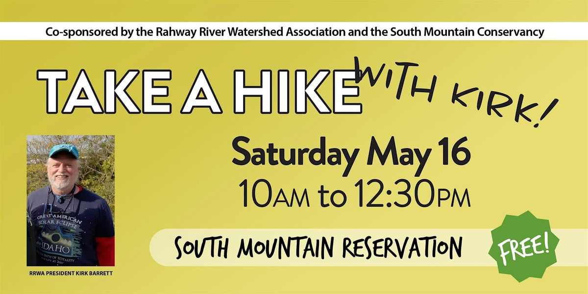 Hike about 2-3 hours covering 3-4 miles at a modest pace over rocky trails with one long climb from the Rahway River up South Mountain. Focus on ecology and hydrology, led by President of the Rahway Watershed Association and expert on local watershed issues. Good balance required. Children welcome. No dogs.