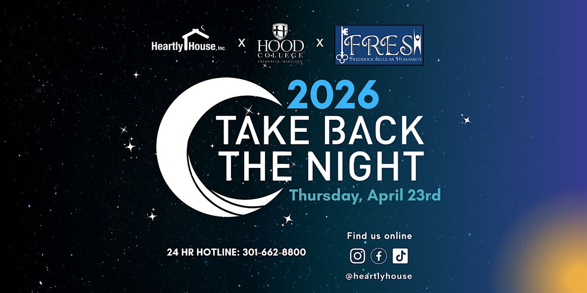 On April 23, 2026 Heartly House will host Take Back the Night on Hood College's campus. The night will consist of a pre-show activity in Whitaker Campus Center where community members and local resources will gather to share information; you can connect with your community, learn more about power-based violence, get a face painting, and even be entered in a raffle! The main event will consist of survivors sharing their stories, a guided somatic experience, a community art project, and more! The evening will end with us marching to the pergola (also located on Hood College campus), and illuminating the night sky with a candle representing that together, we can illuminate the darkness.