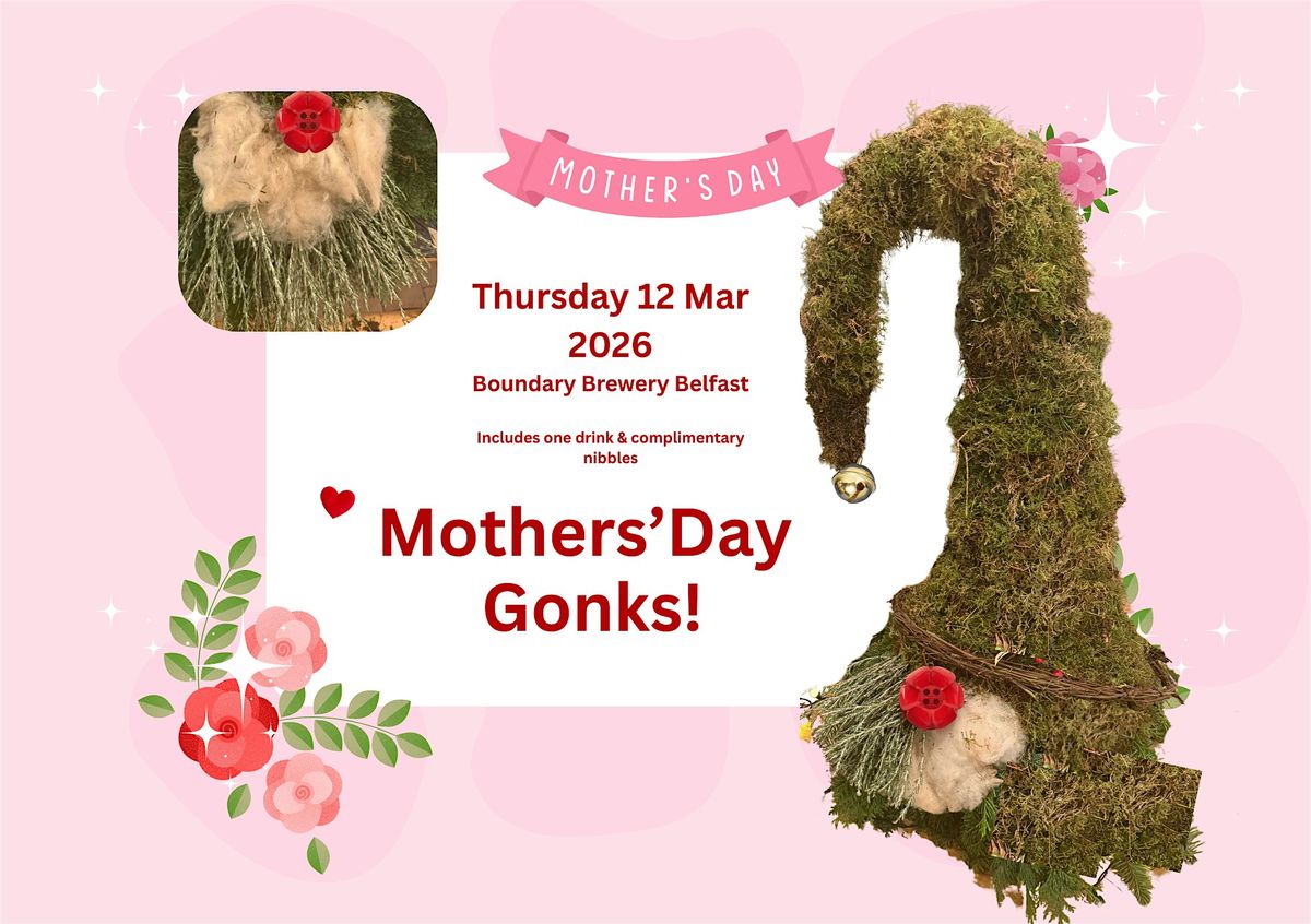 In celebration of mothers everywhere and ahead of this year’s Mothers’ Day, why not join us at Boundary Brewery, Belfast on Thursday 12 March 2026 at 7pm - either as a gift for a mum or treat your mum and make one each! Everyone takes home their very own spring gonk!