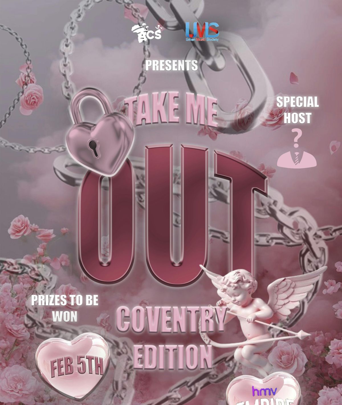 Your favourite dating show is finally here TAKE ME OUT returns to Coventry Empire on Wednesday 5th February 2026Tired of hot girl summer and looking for love? 👀🧐Don’t worry, so are we.🤝 In this cold cold winter, we are all in need a ‘babes’ to survive. 🥰 So, come down to the annual Take Me Out event where new love might be found 🤭