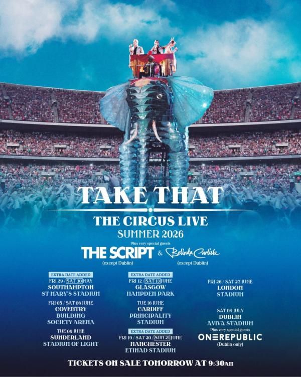 Take That at Hampden Park National Stadium🎉 Welcome to Take That Glasgow Tickets, where dreams come alive and possibilities are endless! 🏛️ Join us at Hampden Park in the heart of Glasgow, SC for an event that defies expectations. 📅 On June 12th, 2026 at 05:00 PM, be part of something truly extraordinary as we bring together innovation, entertainment, and pure magic. ✨ Every aspect has been carefully designed to ensure an unforgettable experience for all our guests. Whether you're seeking adventure, inspiration, or simply a break from the ordinary, this event promises to deliver beyond your wildest dreams. ✨ With tickets available at 86.06 EUR, your journey awaits. 🎊 Prepare for a journey into the extraordinary!