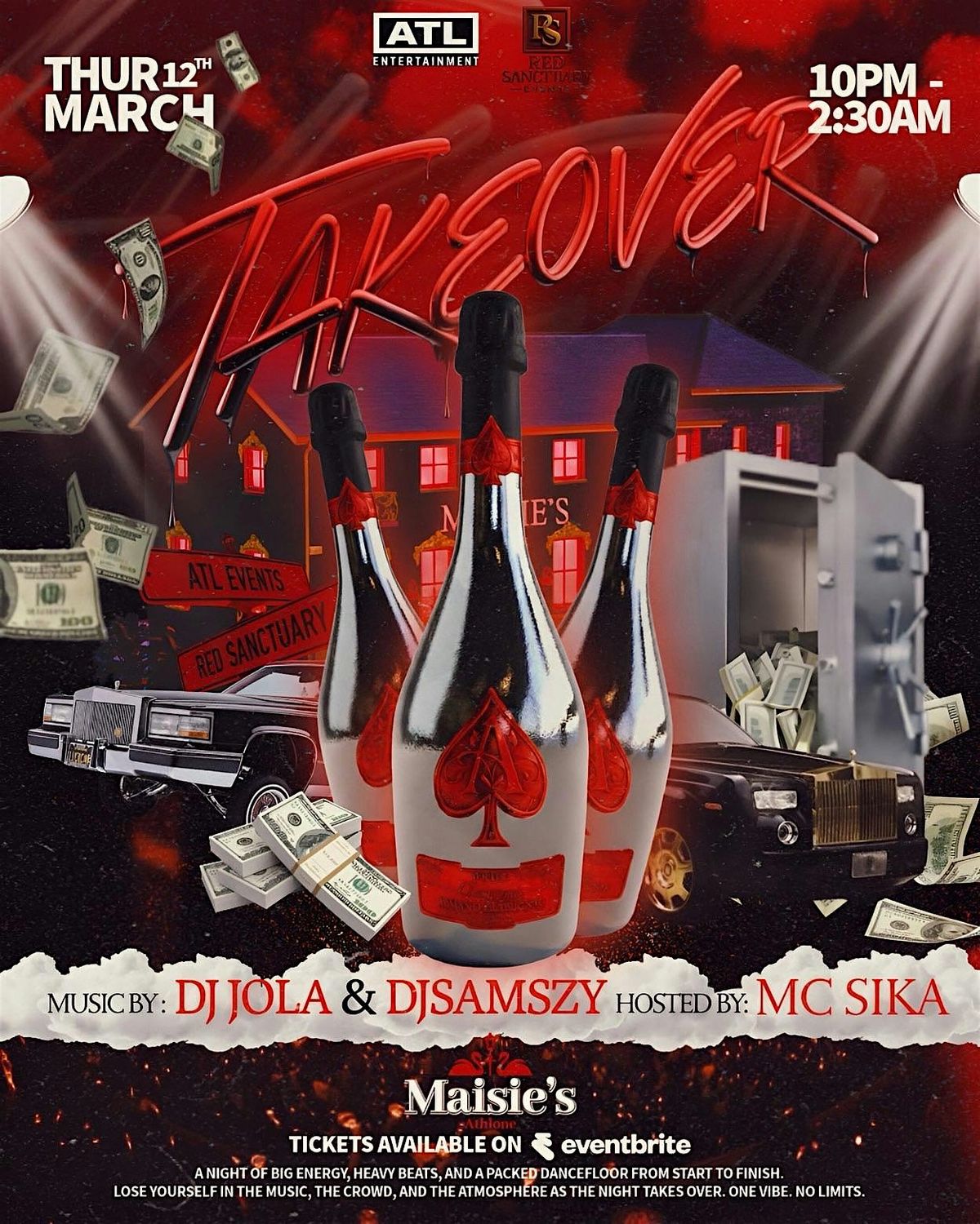 TAKEOVER is bringing the ultimate vibe to Maisie’s, Athlone on Thursday, 12 March (10PM–2:30AM) Another night filled with vibes and enjoyment.