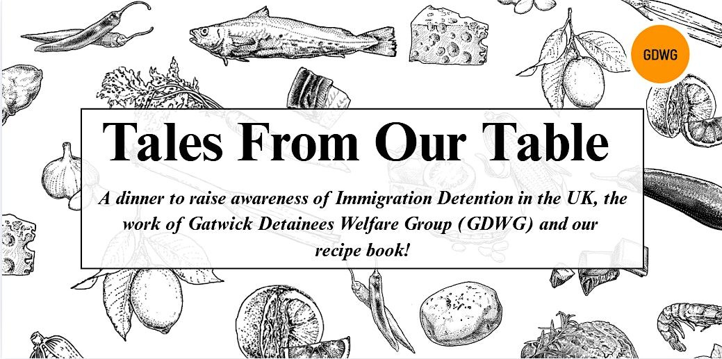 Join us for meal on Saturday 18 October to celebrate Gatwick Detainees Welfare Group (GDWG) and our recipe book, Tales From Our Table !