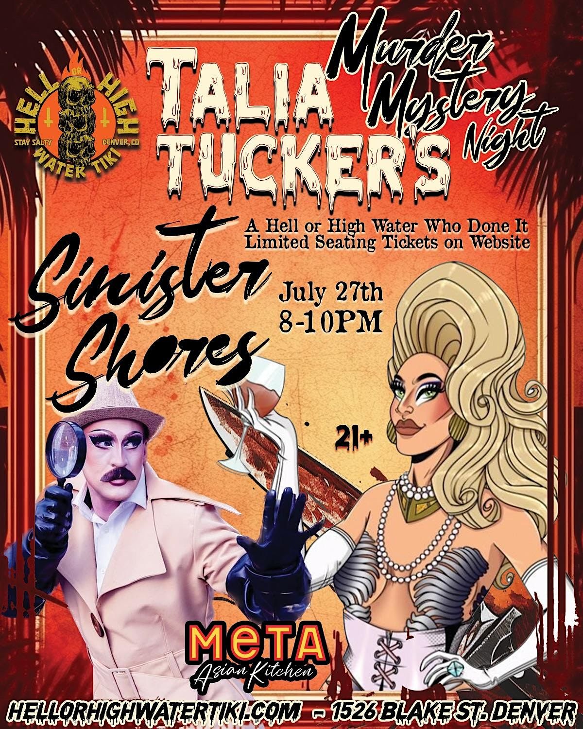 Step into the intrigue and glamour of a thrilling M**der Mystery event at Hell or High Water, hosted by the illustrious premiere drag queen Talia Tucker! On July 27 at 8 pm, prepare for an evening filled with mystery, suspense, and the opportunity to become an active participant in the M**der investigation.