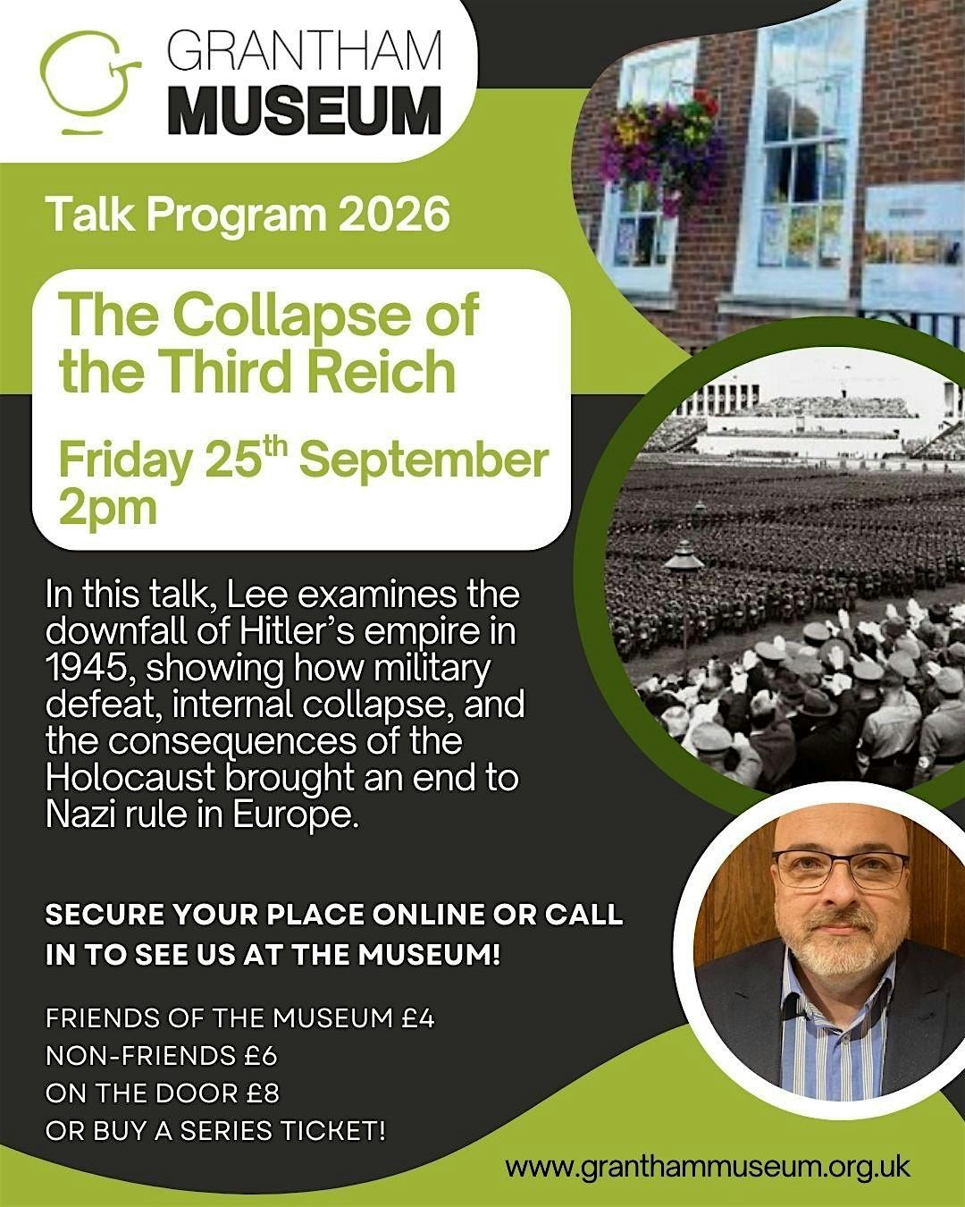 Join us on Friday 25th September in the Museum at 2pm, as Lee Steptoe examines the downfall of Hitler’s empire in 1945, showing how military defeat, internal collapse, and the consequences of the Holocaust brought an end to Nazi rule in Europe.