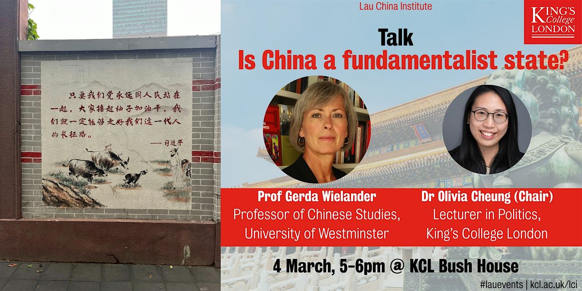 Join us for a discussion with Gerda Wielander, Professor of Chinese Studies, University of Westminster chaired by Dr Olivia Cheung, Lecturer in the Department of European and International Studies and Affiliate of the Lau China Institute, King’s College London on Wednesday 4 March, 5-6pm, Room 4.04, Bush House South, KCL Strand.