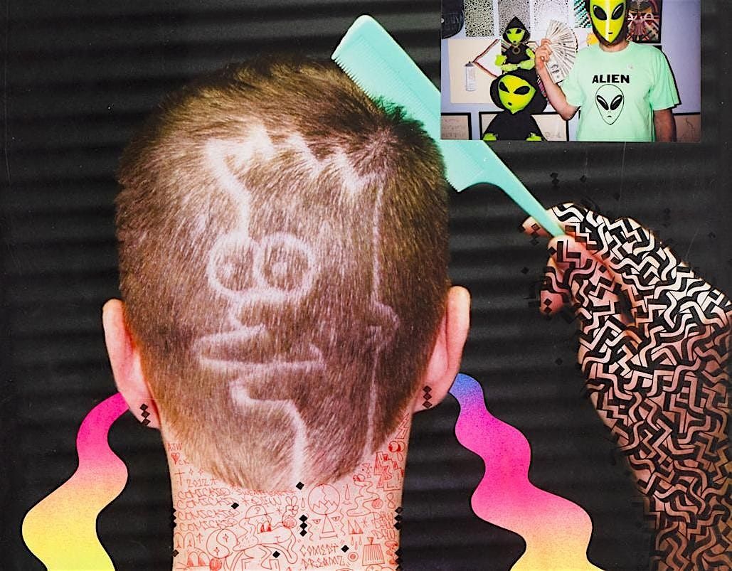 Andrew Jeffrey Wright is a multidisciplinary artist working across drawing, comics, painting, murals, photography, animation, screen printing, zine making, installation, and performance. He has been interested in patterns throughout his career, making abstract work reminscent of Op Art, as well as pop culture characters like E.T., Garfield, and Bart Simpson. Humor is a unifying component across the varied work Wright makes. Wright has also always championed the dissemination and accessibility of his art through t-shirts, buttons, and calendars (Labs with Abs, his screen printed calendar of anthropomorphic Labradors looking buff has been a semi-annual project since 2006). Wright is a founding member of Space 1026.
