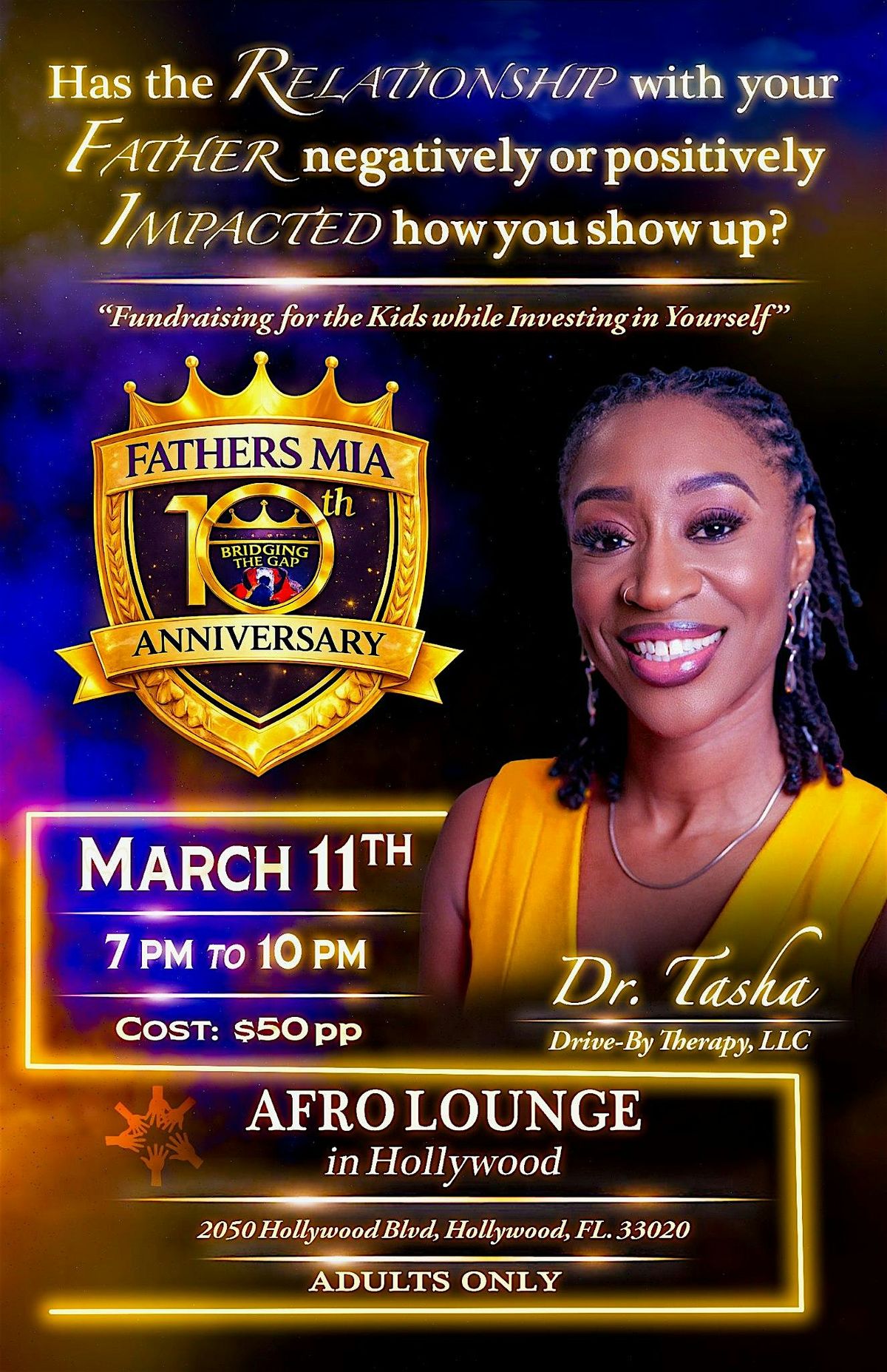 Fathers MIA works with youth navigating life w/o Dad. This Fundraiser is for adults to have a group process, like a Talk Show w/ Dr. Tasha.