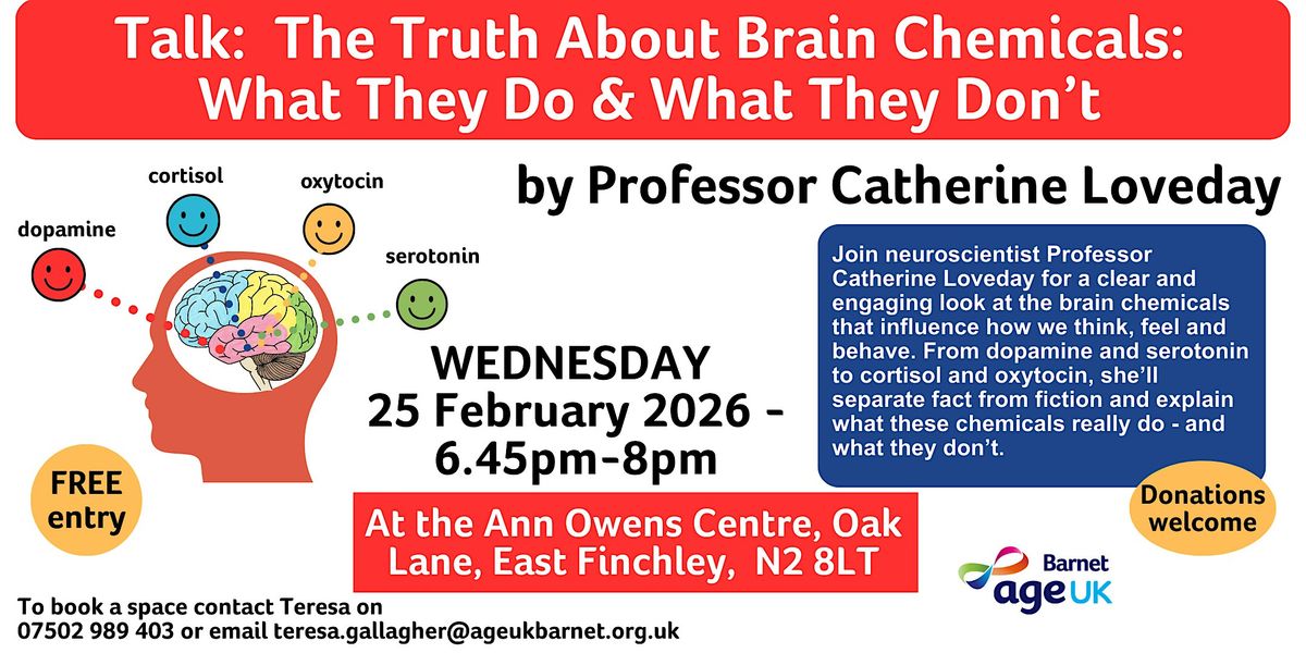 Join us for a talk about how brain chemicals influence how we think, feel and behave.About this Event