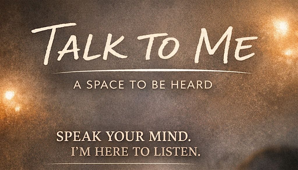 Talk to Me is a quiet, supportive space where you can share whatever you’re carrying and I simply listen.