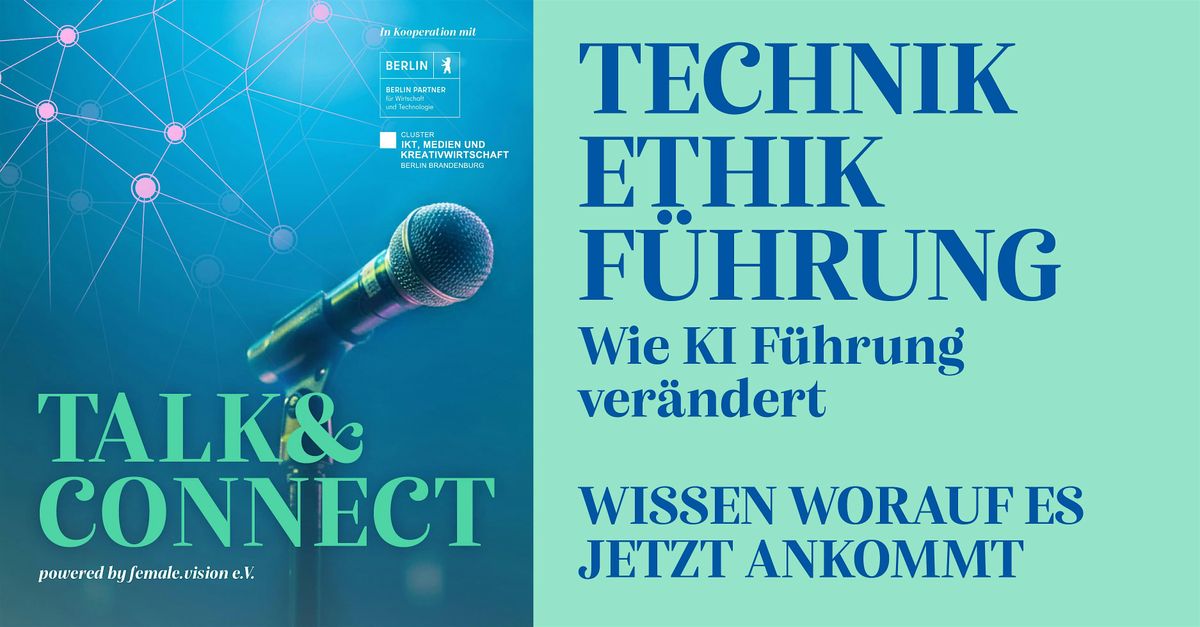 female.vision e.V. lädt ein zur Auftaktveranstaltung der Gesprächsreihe „Talk&Connect – TECHNIK.ETHIK.FÜHRUNG“ . female.vision ist eine gemeinnützige Organisation aus Berlin, ein Think&Do Tank, der sich für eine ethische, inklusive und verantwortungsvolle Gestaltung der digitalen und KI-getriebenen Zukunft einsetzt.
