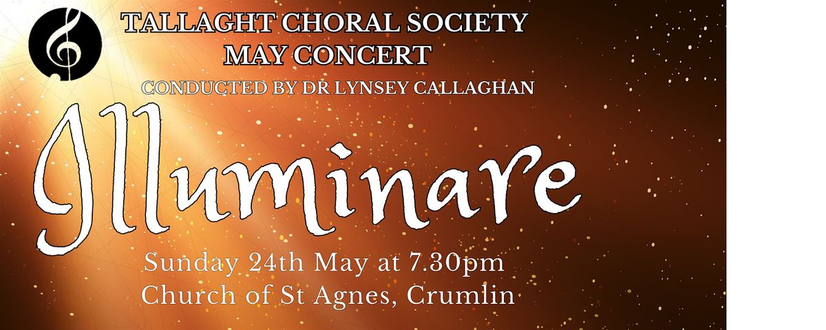 So, ''light up/ illuminate'' your night at Tallaght Choral Society's May concert in the glorious surrounds of the Church of St Agnes, with the accompaniment of the Irish Choral Sinfonia.