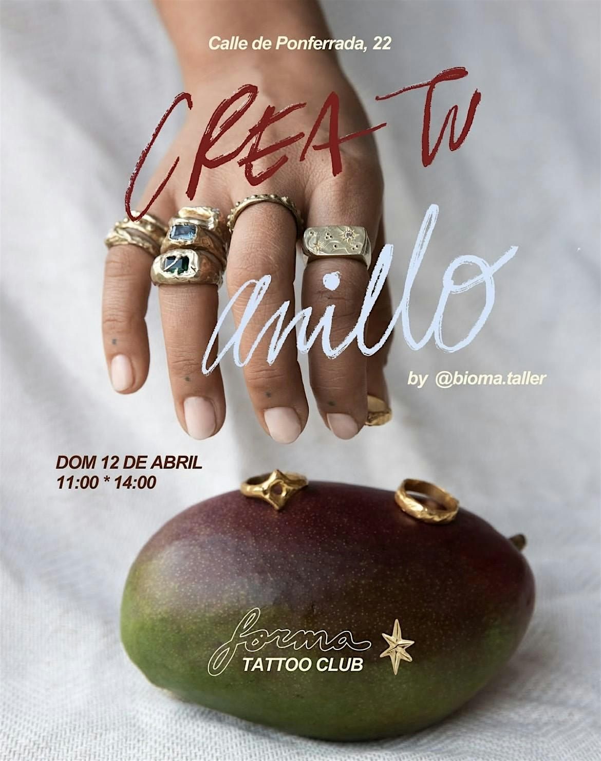 Un taller de 3h en el que podrás diseñar tu propio anillo con la técnica de la cera perdida, @bioma.taller será la profe y ella te guiará en este proceso