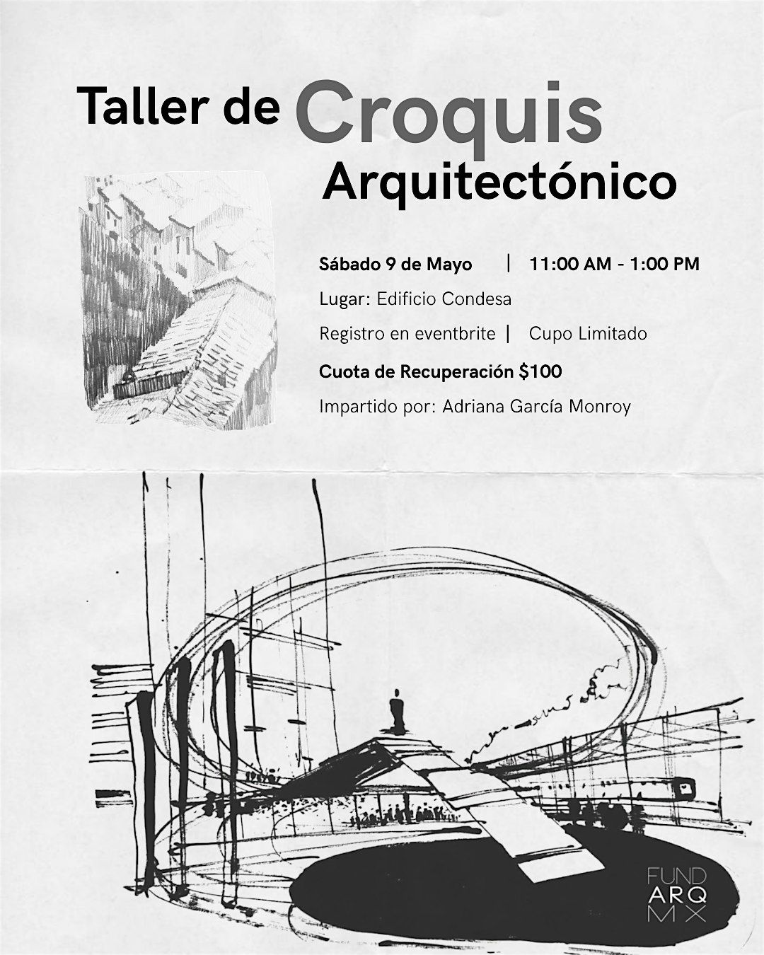 Te invitamos a nuestro Taller de Croquis Arquitectónico, impartido por Adriana García Monroy. Un espacio ideal para observar, interpretar y expresar la arquitectura desde tu propia mirada, mientras desarrollas tu técnica y creatividad. Dirigido a todo público.