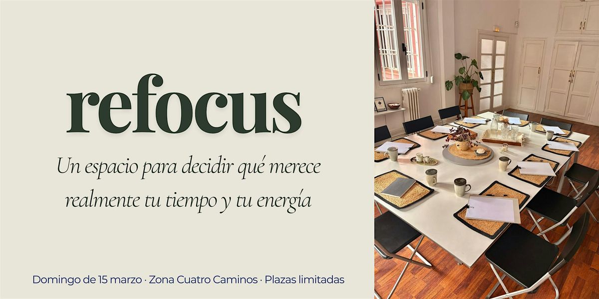 Refocus es un encuentro práctico para identificar qué merece realmente espacio en tu semana y cómo protegerlo en tu vida real.