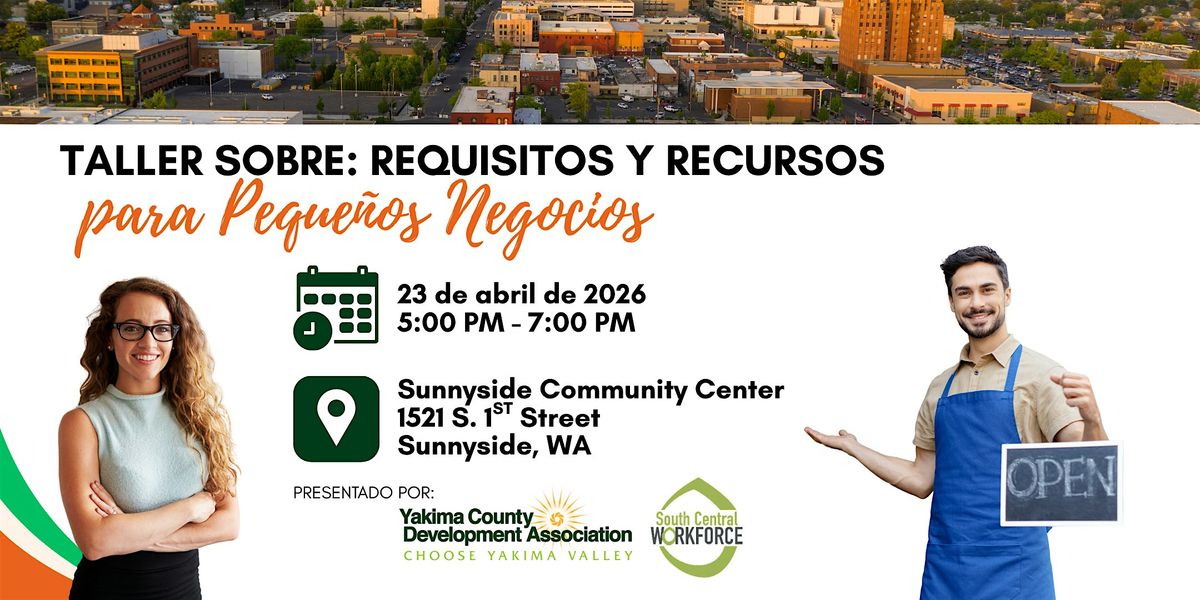 Acompáñanos a un taller para Pequeñas Empresas organizada por la Yakima County Development Association (YCDA) en colaboración con South Central Workforce (SCW). Esta sesión se enfocará en comprender los requisitos clave y en acceder a recursos valiosos para el éxito de los pequeños negocios.