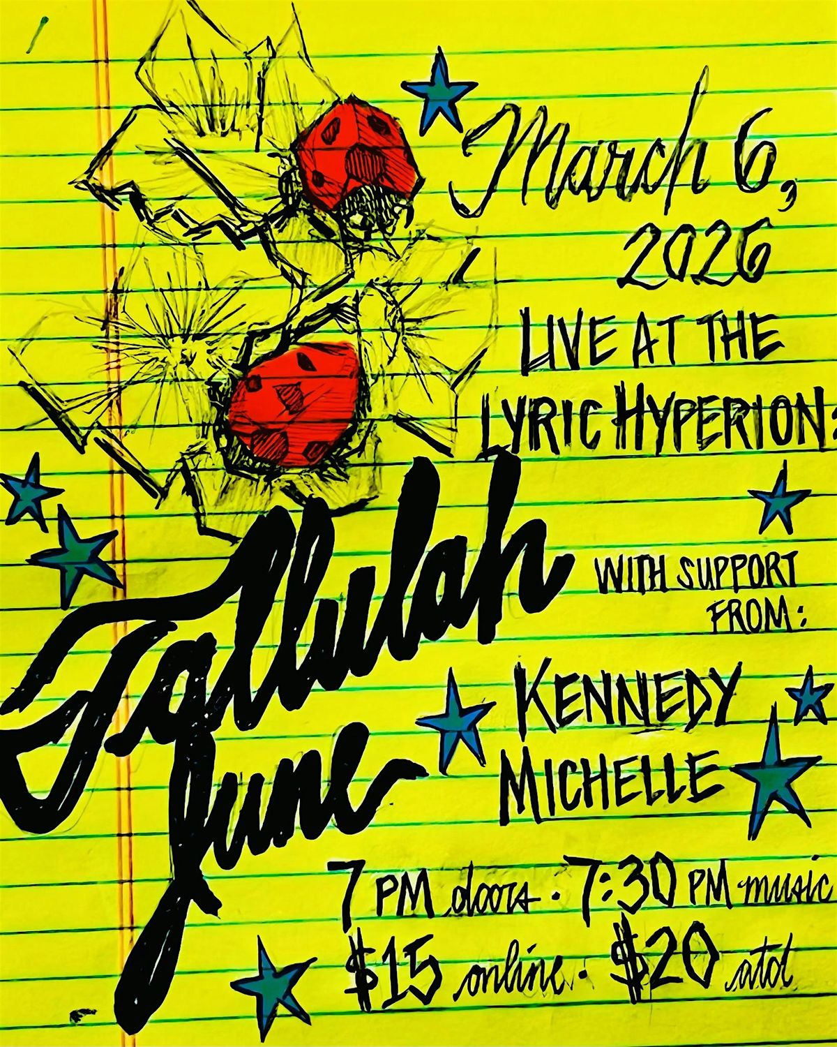 Tallulah June is an emerging artist based in Los Angeles and is excited to play her second headline show at the Lyric Hyperion! With her indie-folk vocals and intimate lyrics she travels around LA playing as many shows as possible in hopes of connecting with audiences and building community. She has two songs out on all streaming platforms and posts frequently on socials( @tallulah.juneeee )!! She is beyond grateful to the Lyric for having her back, to her friends for playing with her, and to Kennedy Michelle for opening!