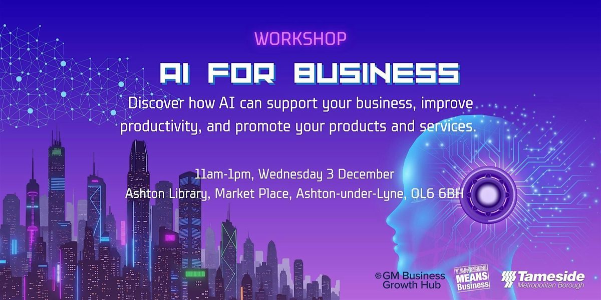 Join this GM Business Growth Hub workshop to discover how AI can support your business to improve productivity, assist with everyday tasks, and help with marketing and promotion of your products and services.
