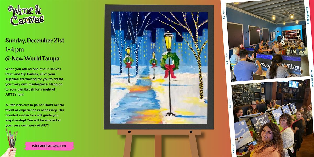 Join us for a festive Paint & Sip afternoon at New World Tampa, where creativity meets holiday cheer! We’ll be painting a beautiful piece inspired by Holiday Lights Downtown, while sipping on your favorite drinks in a cozy, artistic atmosphere.