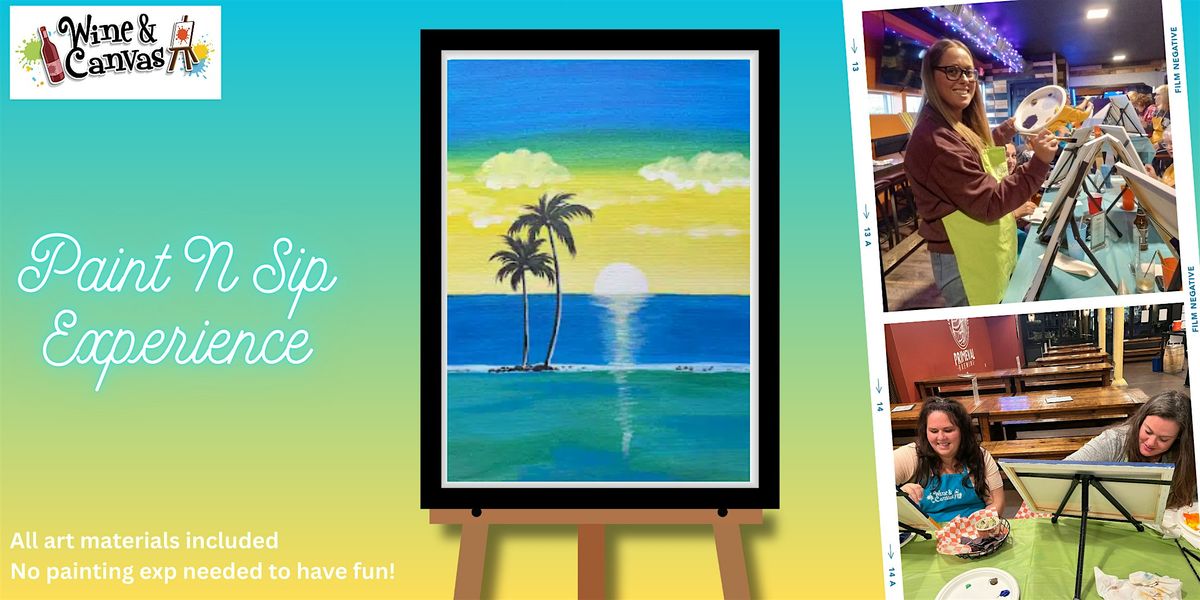 Turn your night into a mini island getaway at our Tampa Canvas & Wine Night! We’ll be painting “Caribbean Sunset,”a dreamy tropical scene filled with glowing skies, swaying palms, and shimmering ocean blues—bringing warm coastal vibes right to your canvas.