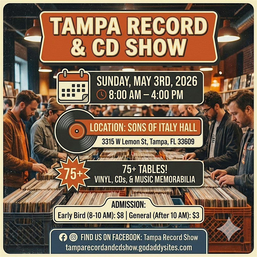 Florida music lovers, it’s time to stock up! The Tampa Record & CD Show is happening Sunday, May 3rd at the Sons of Italy Hall.We've got