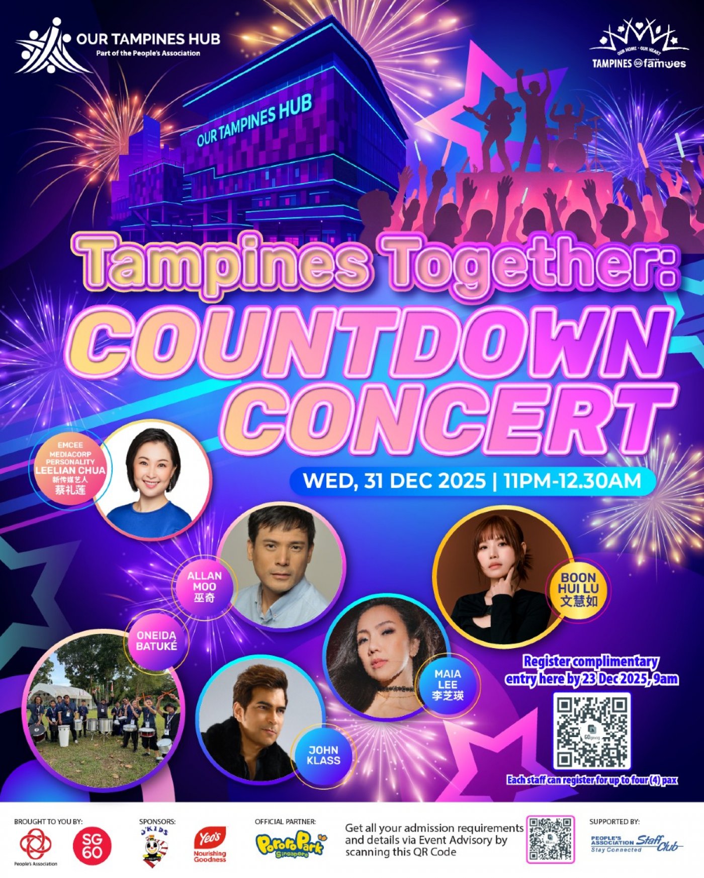 Beyond these activities, residents can look forward to Tampines Together: The Countdown Concert, a community celebration shaped by the people who call Tampines home. Families, friends and neighbours are invited to come together and welcome 2026 as one united community.