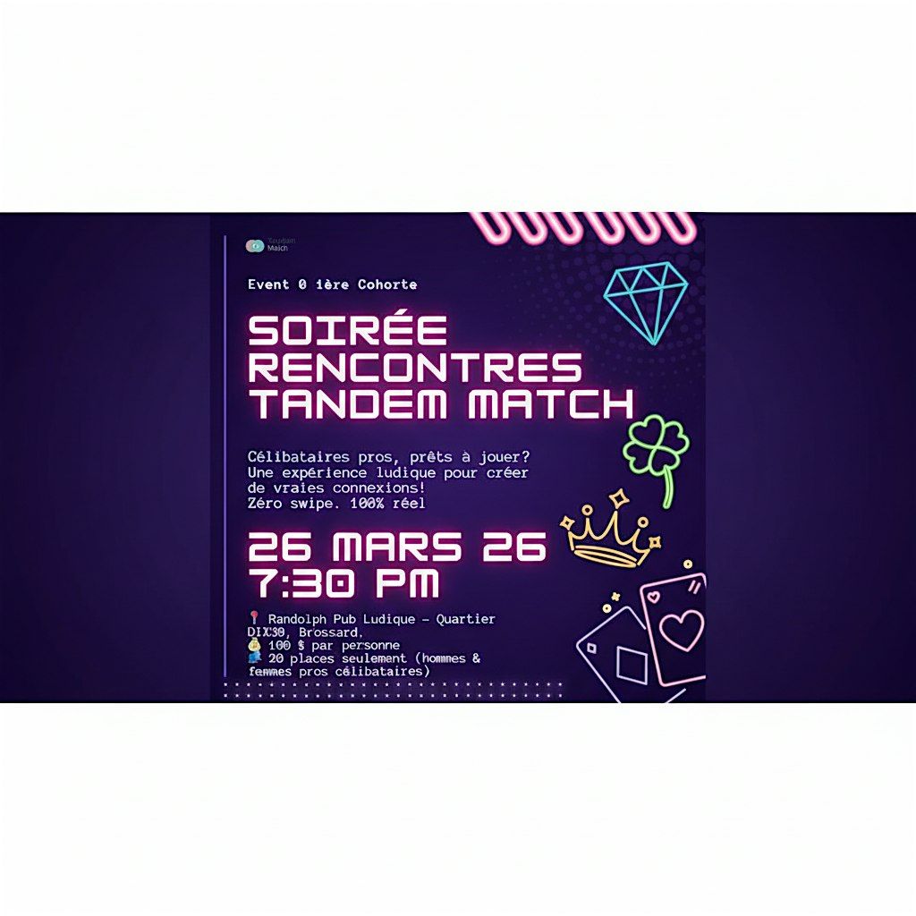 Nous créons des expériences sociales soigneusement orchestrées, où chaque détail est pensé pour favoriser des connexions naturelles et mémorables. Loin du bruit, des écrans et des échanges superficiels, Tandem Match propose un cadre raffiné, une atmosphère chaleureuse et des interactions authentiques.