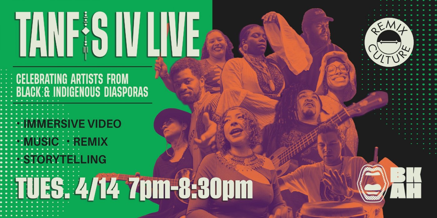 Following a stunning premiere in Upstate New York, Remix ⟷ Culture is proud to bring Tanfis IV Live to Brooklyn. This 90-minute immersive experience features nine acclaimed NY-based performing artists—traditional musicians, remix artists, and storytellers—honoring and re-imagining their Black and Indigenous lineages.