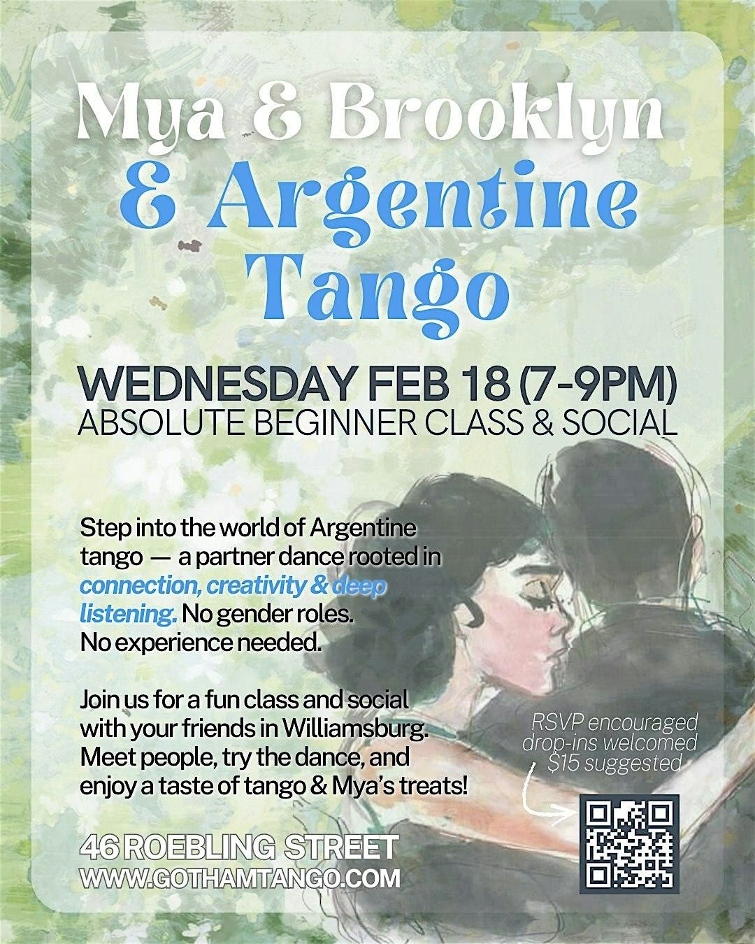 GothamTango brings Argentine tango to Mya Wine Bar Williamsburg for a beginner-friendly class and social built around connection, music, and real human presence. No gender roles. No partner needed. No experience expected.