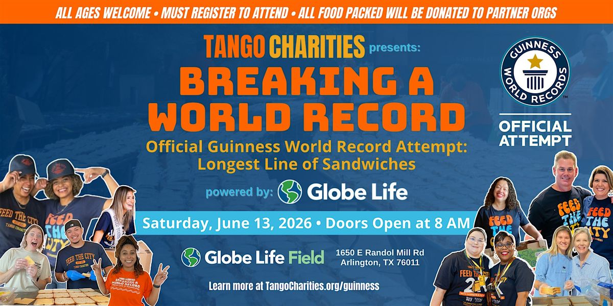 Join Tango Charities for a historic, record-breaking event at Globe Life Field, our title sponsor, on Saturday, June 13, 2026!