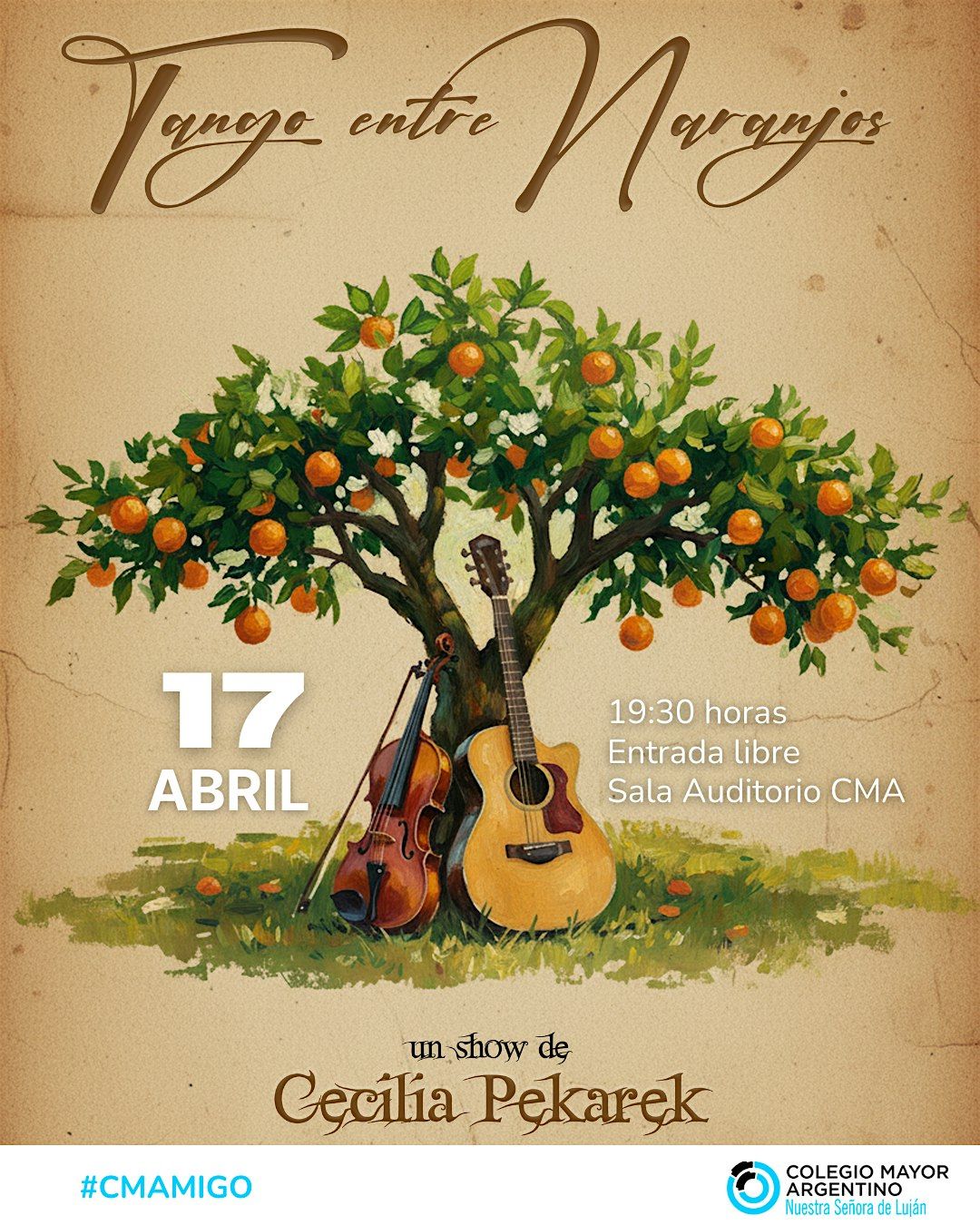 ¡Ven a vivir Tango entre Naranjos! 💃🏻Cecilia Pekarek, destacada violista con formación en la Universidad Nacional de Córdoba y trayectoria internacional, nos invita a un espectáculo que combina tango, música clásica, composición propia y poesía.