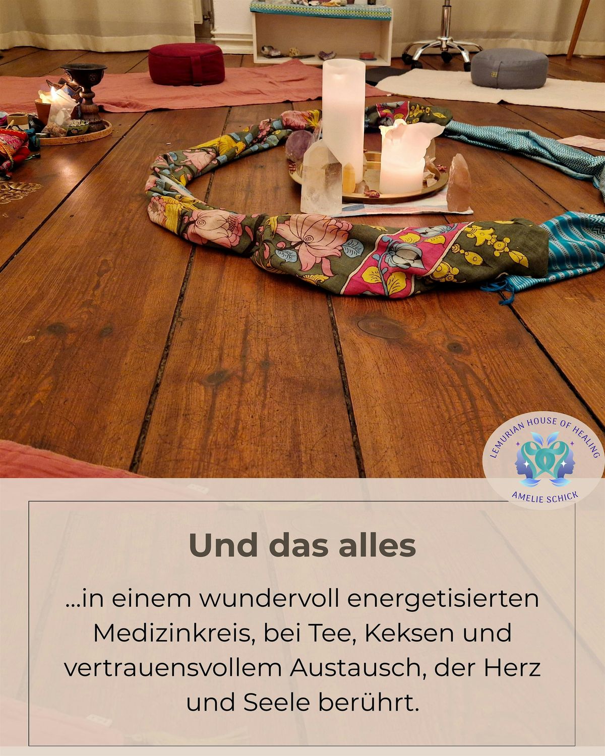 Triff dich entspannt in einem liebevollen Medizinkreis und entdecke dein Energiesystem durch Herz-öffnende Gespräche, sanfte Übungen, Tanz, Mantras, Gesang und kleine Zeremonien.