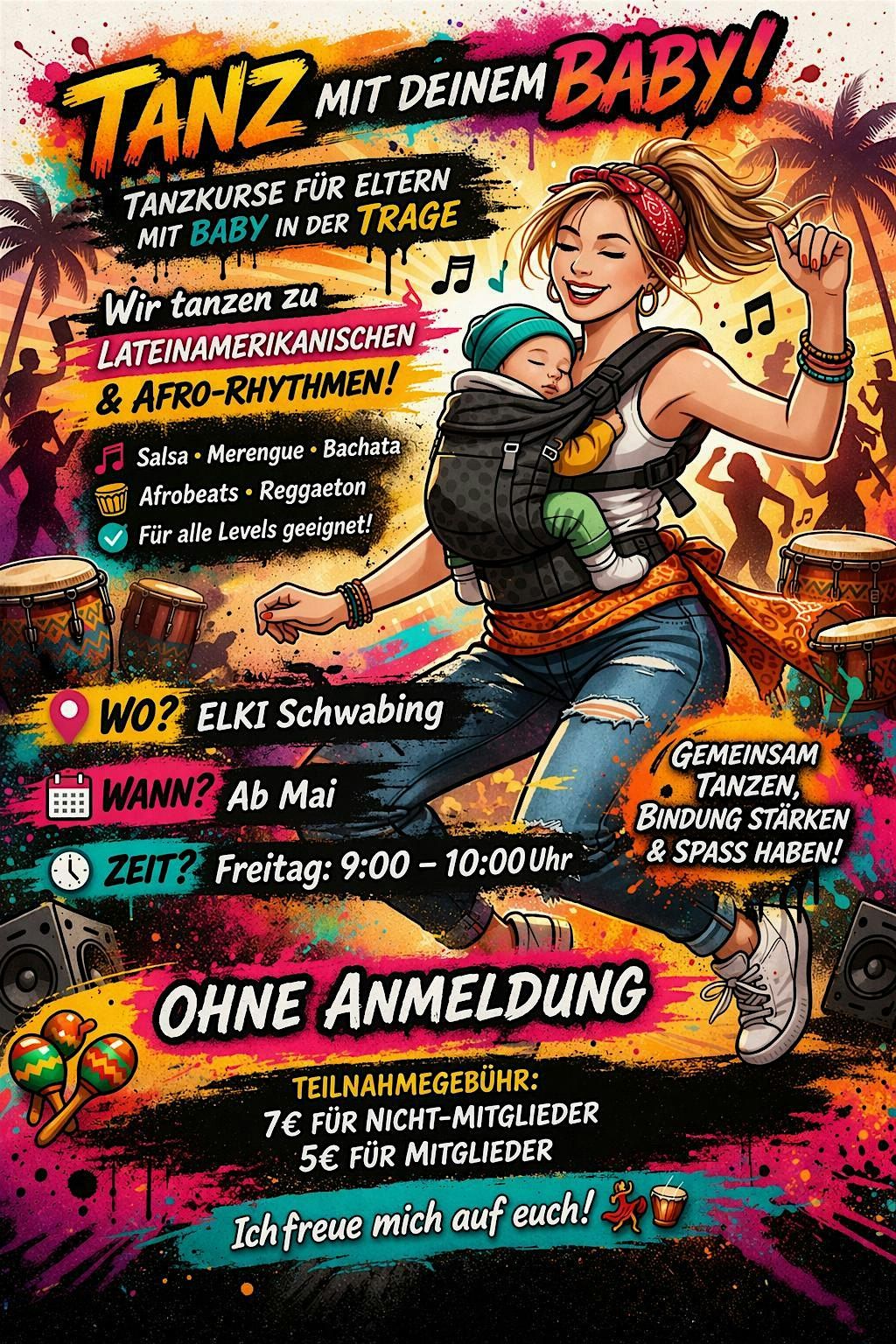Wir tanzen zu Lateinamerikanischen- und Afro-Rythmen. Salsa, Merengue, Bachata, Reggaeton, Afrobeats, für alle Levels geeignet!