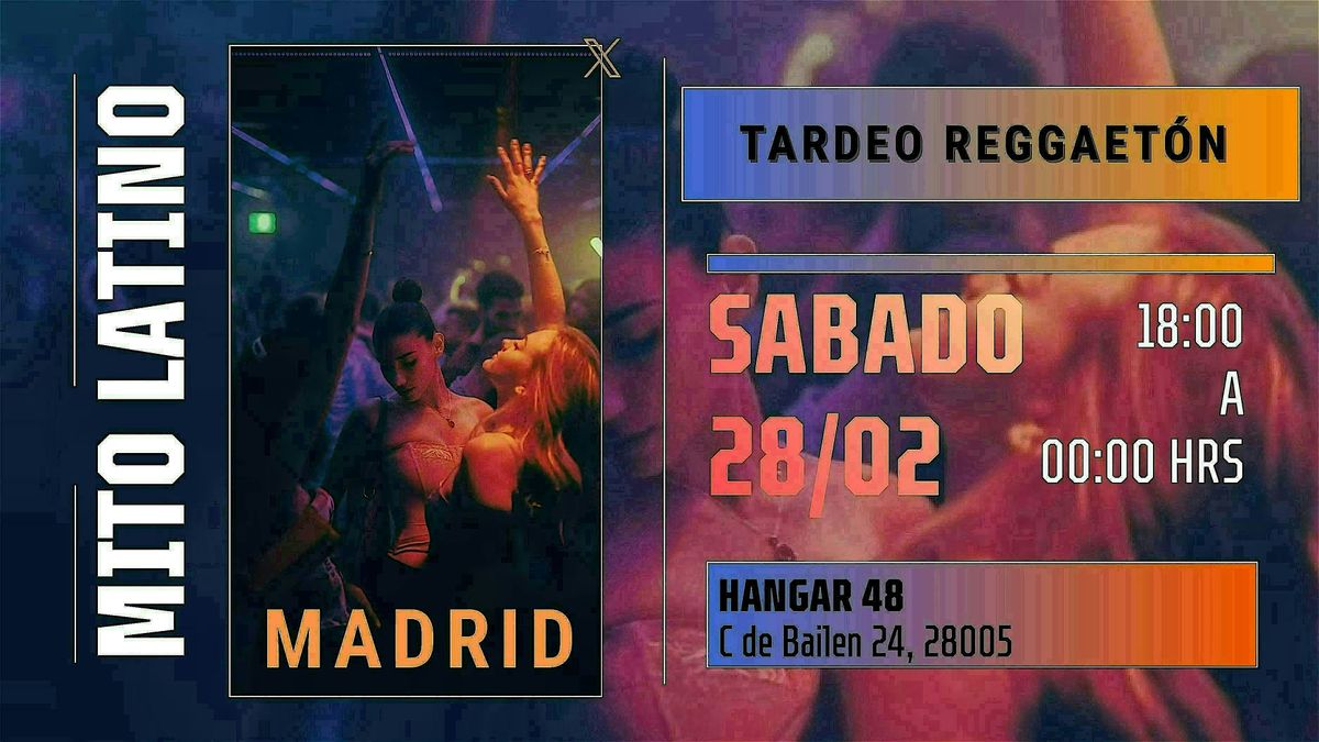MITO LATINO llega a Hangar 48 con un tardeo de reggaetón pensado para bailar desde temprano, buena energía y ambiente cercano.