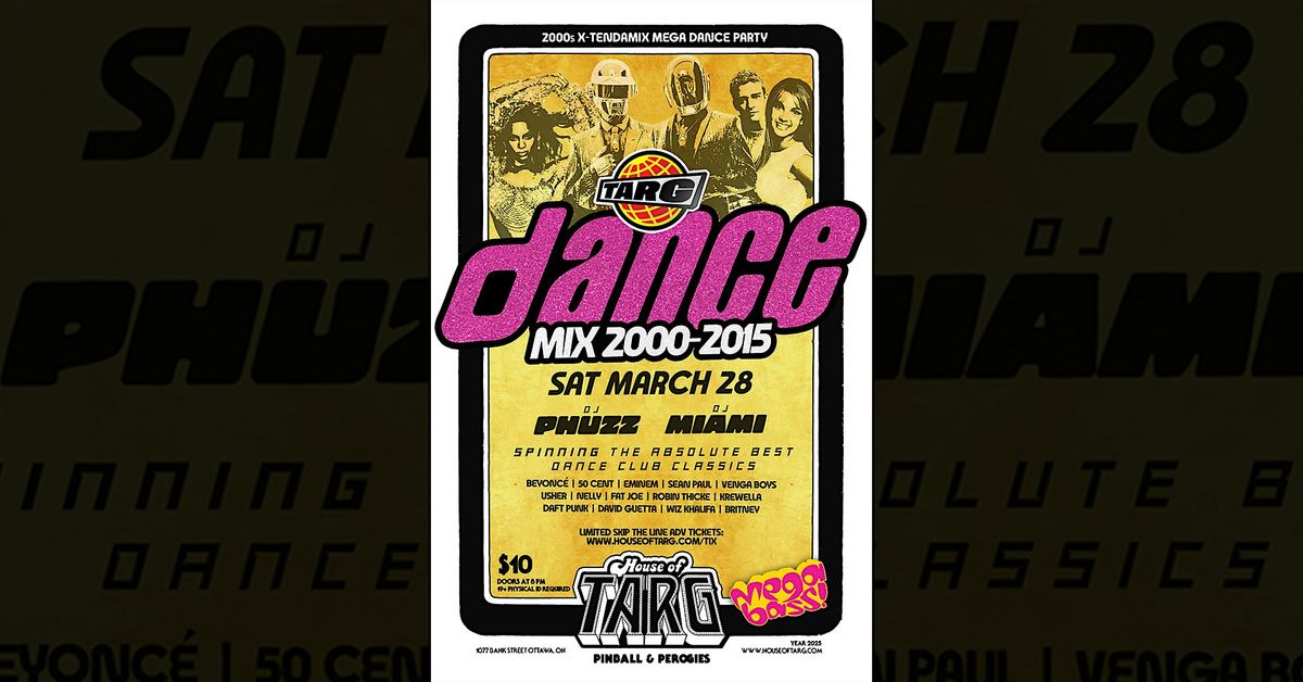 DANCE PARTY LIKE YOU DID IN THE 2000’s wha? TARG Dance Mix DJ PHUZZ & DJ MIAMI will be stepping out of the 90s for a hot second to delve into the best Pop, Dance & Hip Hop jams of the 2000’s. But not to worry they will still be spinning the hottest vinyl from 20+ years ago. Inspiration for New Millennial Dance Floor bliss will come from the iconic MUCHDANCE compilation cds that helped define the aughts!
