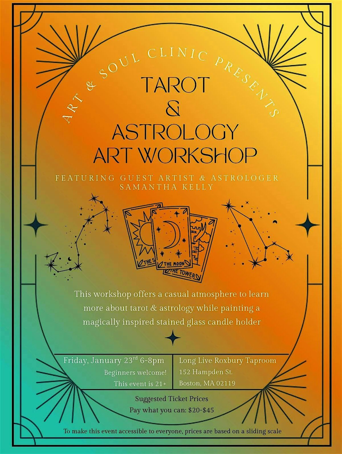 **** Skip the ticket fees and submit your payment directly to Art & Soul Clinic using Cashapp/Venmo with the note "Tarot Astrology Workshop": https://www.artandsoulclinic.com/payment-and-donations