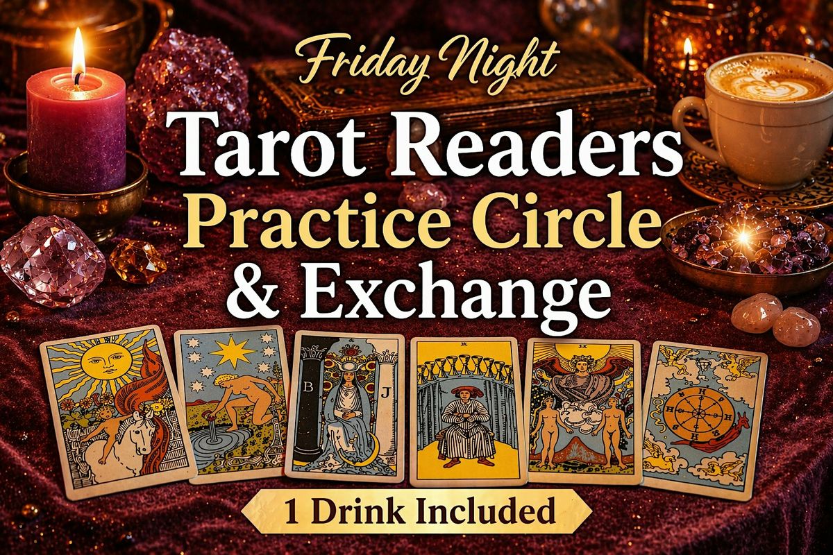 Join us in person for a fun and relaxed Tarot Readers Practice Circle & Exchange! Whether you're a newbie or a seasoned reader, this is your chance to practice, share insights, and connect with fellow tarot enthusiasts. Plus, enjoy 1 drink included at NO extra cost. Bring your cards, your curiosity, and let's dive into the magic together!