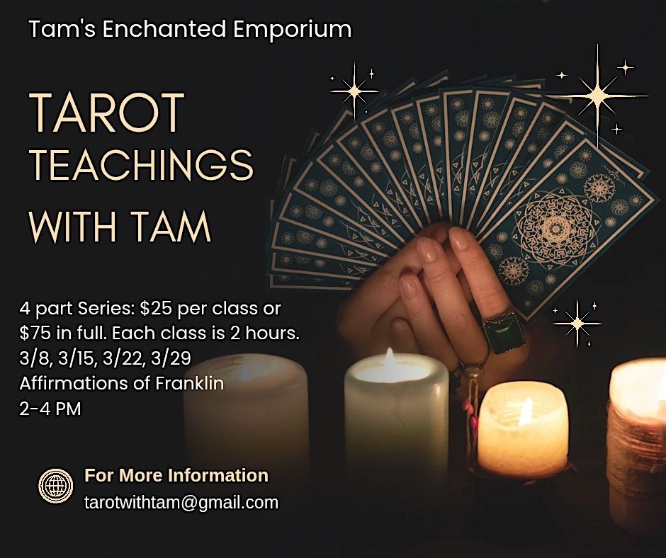 TamsEnchantedEmporium #TarotClass #LearnTarot #TarotReaderTraining #IntuitiveDevelopment #FranklinEvents #SpiritualCommunity #TarotMagic #AffirmationsOfFranklin