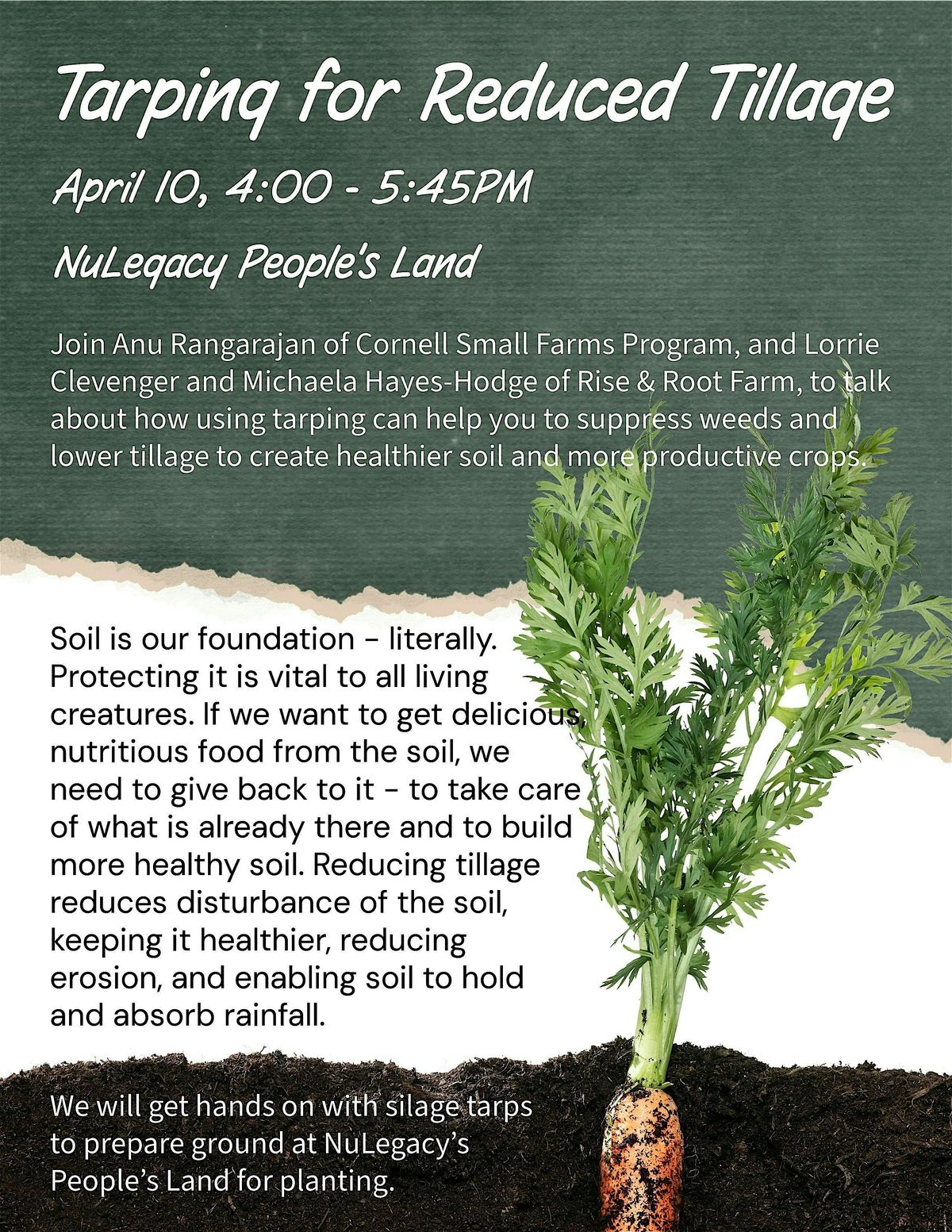 Join Anu Rangarajan of Cornell Small Farms Program, and Lorrie Clevenger and Michaela Hayes-Hodge of Rise & Root Farm, to talk about how using tarping can help you to suppress weeds and lower tillage to create healthier soil and more productive crops