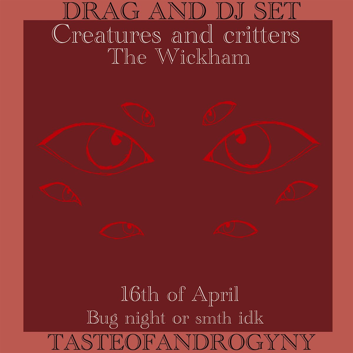 taste of androgyny is a safe space for everyone of every race, gender, sexuality, ability ect ect. hate will not be tolerated. if you feel unsafe at any point please approach a member of staff.
