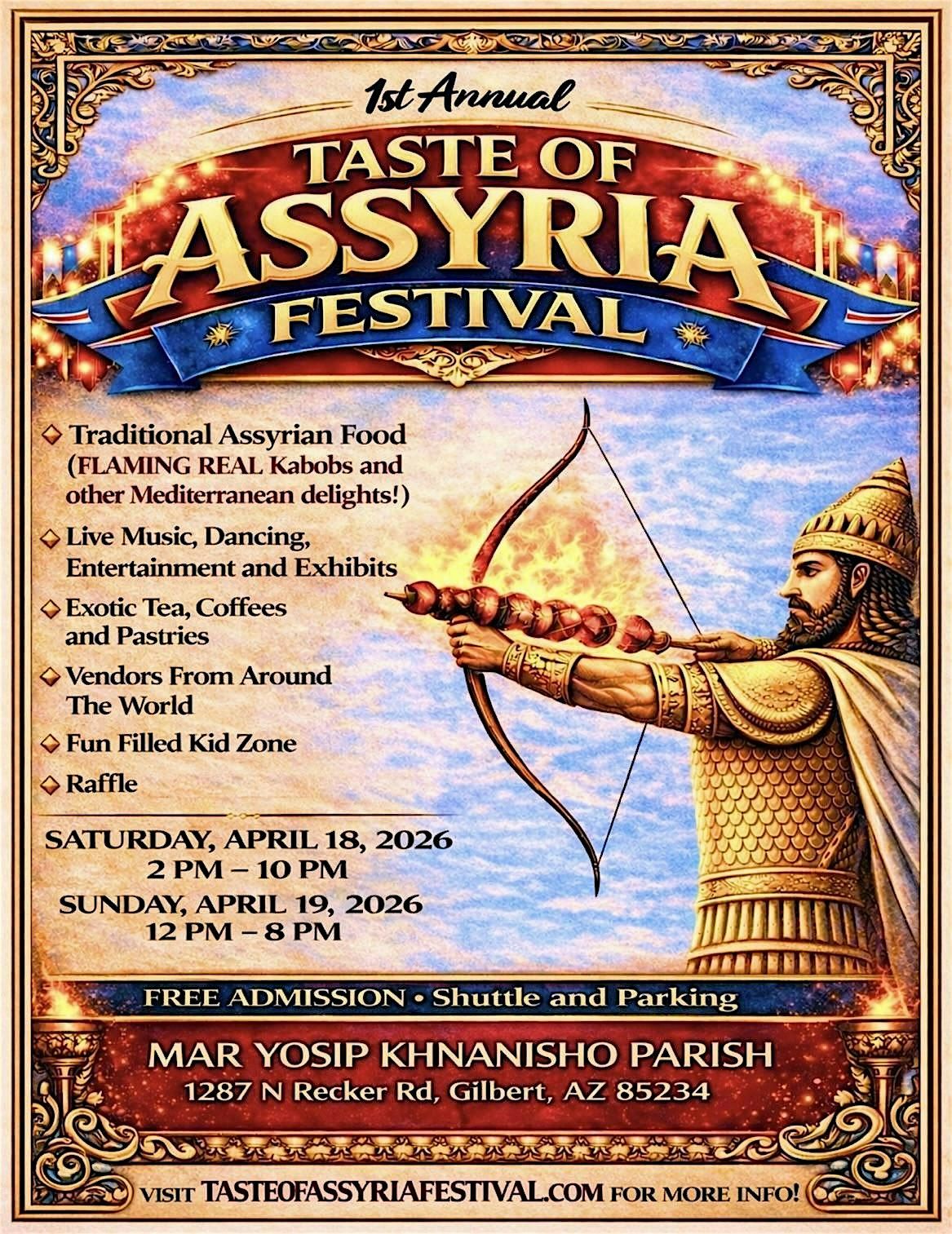 The first-ever Taste of Assyria is making its debut as a vibrant, high-energy, two-day festival celebrating the rich flavors, history, and traditions of the Assyrian people. This landmark event will transform the community into a dynamic cultural destination filled with food, music, movement, and heritage.
