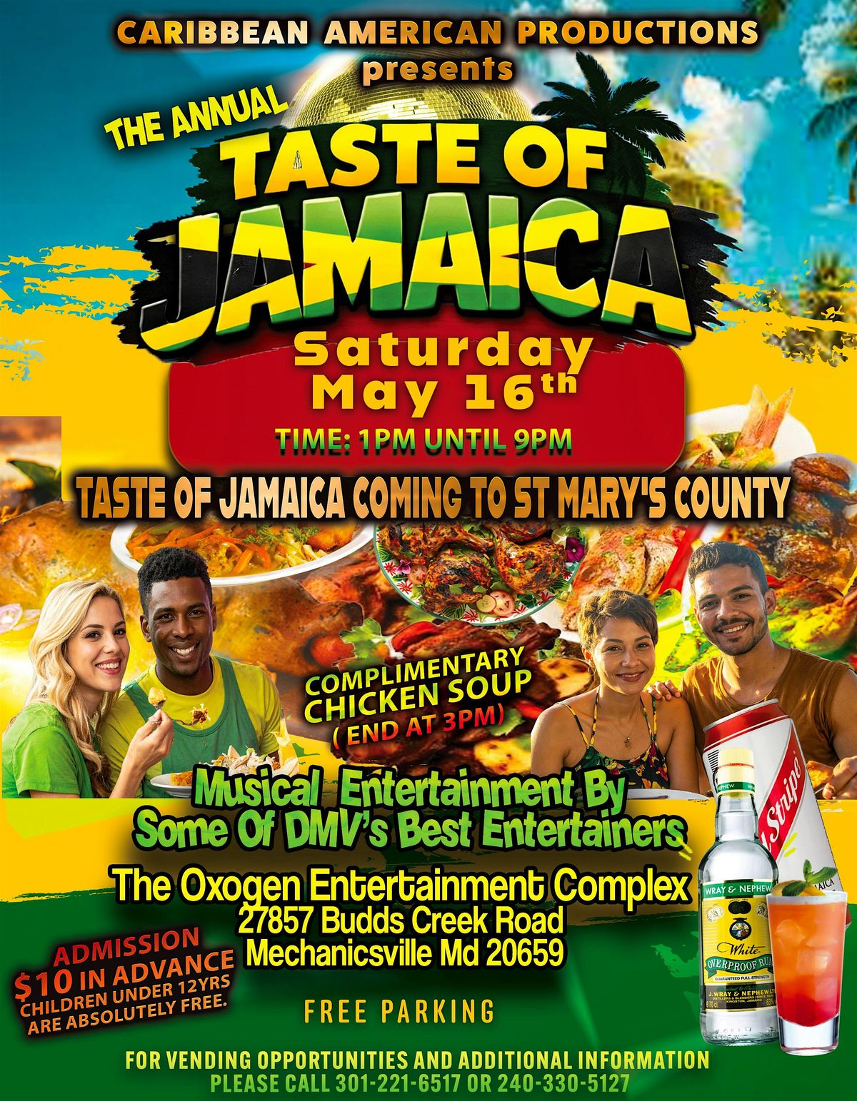 ALL ARE INVITED TO OUR ANNUAL TASTE OF JAMAICA PRODUCTION IN ST MARY 'S COUNTY FOR THE FIRST TIME. OXTAIL, JERK CHICKEN, RIBS, AND MORE.About this Event
