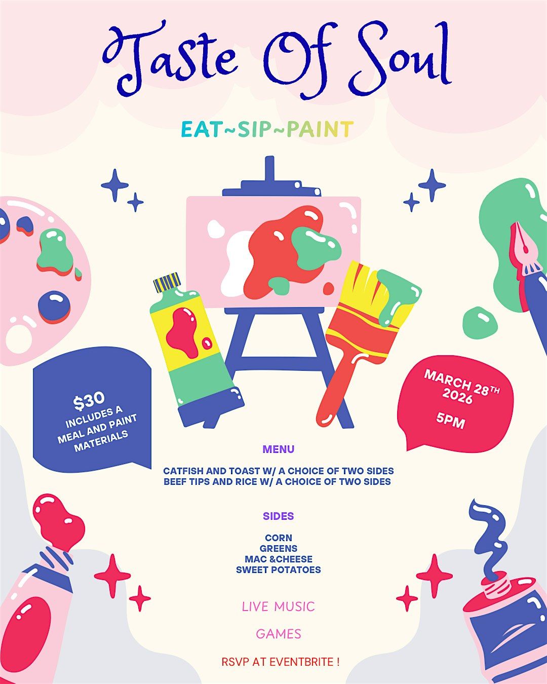 Get ready to vibe with good eats, chill drinks, and some creative painting fun all rolled into one awesome night.