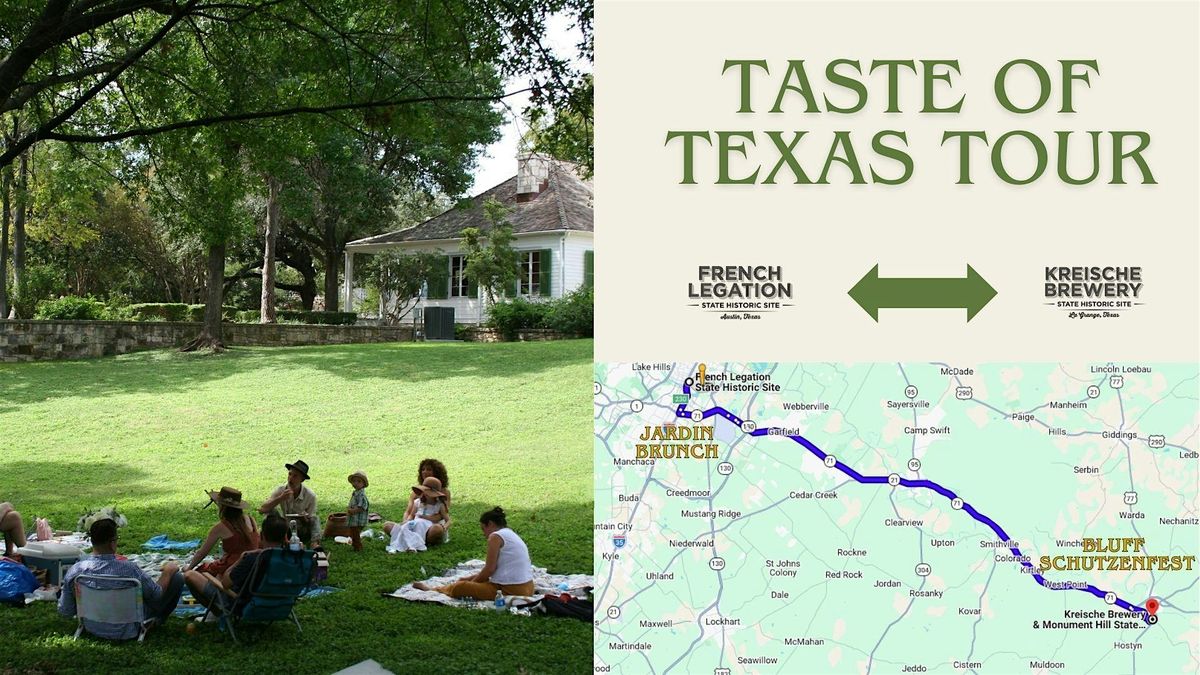 Your journey begins at the historic French Legation State Historic Site in Austin, once home to Alphonse Dubois de Saligny, chargé d’affaires for the Republic of Texas. Enjoy French pastries and a historic overview. As you depart this beautifully preserved 1841 landmark, you’ll travel through the very landscape that shaped early diplomacy, independence, and settlement in the Republic era.